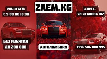 Zaem KG Быстрый займ под залог авто без изъятия Удобная локация! У нас выгодные условия! Сумма займа от 10 000 до 200 000 сомов за 20 минут. Необходимые документы: Паспорт гражданина Кыргызской ...