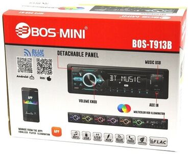 1-DINАвтомагнитола BOS-MINI с Bluetooth-Автомобильная магнитола является специальным устройством, которое воспроизводит звук-музыку в салоне автомобиля. Автомагнитола комплектуется проводами для подключения, пультом и инструкцией по эксплуатации. Автомобильная мультимедийная станция с поддержкой воспроизведения любых носителей, карты памяти станет незаменимым устройством, которое скрасит время нахождения в автомобиле. Технически простое в монтаже, а также в использовании. Особенности: дистанционное управление цифровая настройка USB-TF формат Характеристики: BOS-T913B Это - MP3-ПЛЕЕР USB-BT. BT MUSIC. Съемная панель. Настройки из приложения APP. Проигрыватель с многоцветной подсветкой RGB. Интерфейс управления рулевым колесом. Съемная панель. Мощность 60 Вт x 4. Bluetooth. USB-Порт Для Зарядки.10 Настроек эквалайзера. Порты USB и AUX. Дистанционное управление. Выход RCA. Универсальная автомагнитола! Автомагнитола 1 din с блютуз изумляет своим функционалом, практичностью и дизайном. Автомагнитола выполнена в сдержанном стиле, с красивой подсветкой, цвет которой можно выбрать из семи предложенных вариантов. Настройка и установка автомагнитолы 1 дин не требует особых навыков, проста и удобна в использовании. Хорошее соотношение цены и качества. Магнитола автомобильная поддерживает карты памяти SD и USB, имеет разъём AUX 3.5 mm, воспроизведение через Bluetooth, максимальная мощность 50Wx4, имеется съемный дисплей на передней панели, поддержка аудио форматов МР3, WMA. Автомобильная магнитола 1 дин подойдет к большинству автомобильных акустик, отличное звучание и стандартный размер, который соответствует всем маркам автомобилей. Комплектация 1-Автомагнитола; 2-Пульт ДУ; 3-Разъемы подключения; 4-Инструкция по эксплуатации; 5-Ключики для съема; 6-Упаковочная коробка.