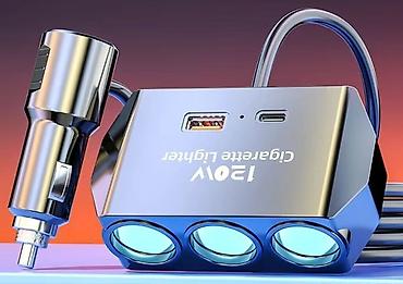 Автомобильная быстрая зарядка для смартфона + удлинитель для прикуривателя с 3 розетками. Для зарядки есть USB и type C. Новая.