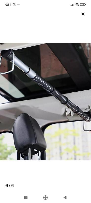 - Конструкция: телескопическая перекладина, крепление за ручки «для пассажиров» над дверями. На концах — крюки/зажимы с антискользящими накладками.