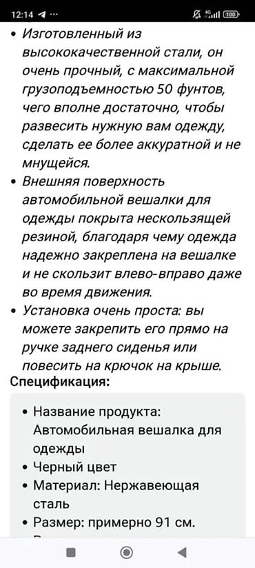 - Назначение: перевозка одежды на плечиках в автомобиле без заминов.