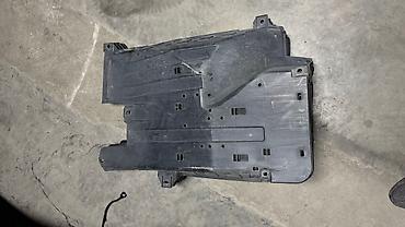 Черная пластиковая защитная панель, вероятно, часть автомобильной конструкции. Имеет сложную форму с ребрами жесткости и крепежными отверстиями. Предназначена для защиты внутренних компонентов автомобиля от грязи, влаги и механических повреждений. Подходит для использования в автомобиле, где требуется дополнительная защита и организация пространства.