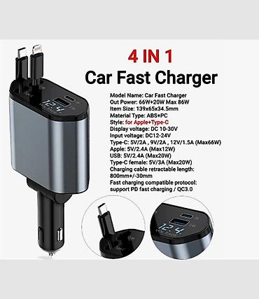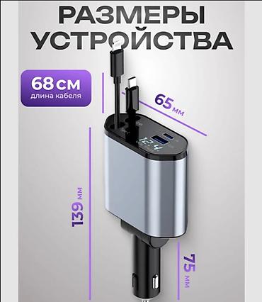 4‑в‑1 быстрый заряд для смартфонов и гаджетов в авто. Подходит для бортовой сети 12–24 В, совместим с легковыми и грузовыми авто.