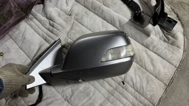 Автомобильное боковое зеркало заднего вида в сером корпусе. Имеет хромированную окантовку зеркального элемента и встроенный повторитель поворота. Подходит для установки на автомобиль с соответствующим типом крепления и электропроводкой.