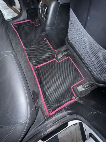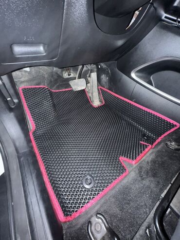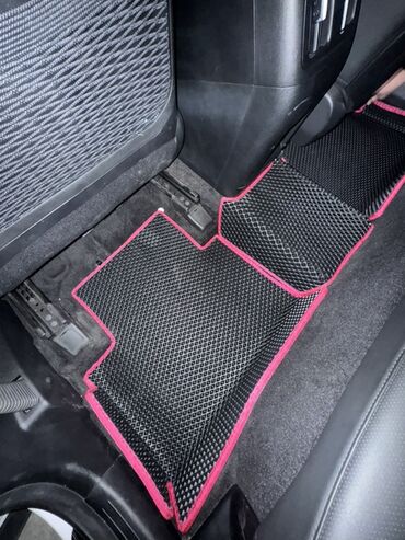 Комплект автомобильных ковриков салона из EVA (ячеистый полимер) с окантовкой малинового/розового цвета.