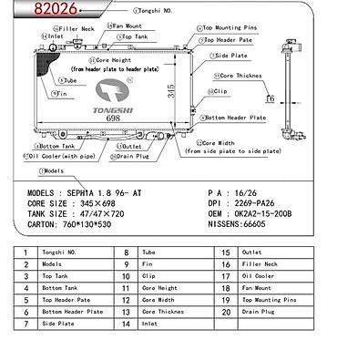 Автомобильный радиатор охлаждения двигателя - Тип: радиатор системы охлаждения (алюминиевый сердечник с пластиковыми бачками) - Конструкция: верхний и нижний пластиковые бачки, тонкопластинчатый т...