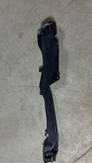 Пластиковый воздуховод, предназначенный для перенаправления воздушного потока в автомобиле. Деталь имеет сложную форму с различными креплениями и отверстиями для установки. Изготовлена из черного пластика, устойчивого к перепадам температур и вибрациям.
