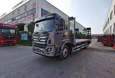 Бортовой грузовик Dongfeng с краном-манипулятором - Марка/модель: Dongfeng (надпись на решетке радиатора). - Тип: бортовой автомобиль с крановой установкой. - Кузов: металлический бортовой, трехст...