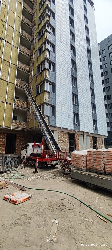 Услуга: подъем строительных материалов на этажи фасадным лифтом (автовышка-грузолифт). Описание: - Специализированный автомобиль с выдвижной лестнично-платформенной системой для вертикальной подач...