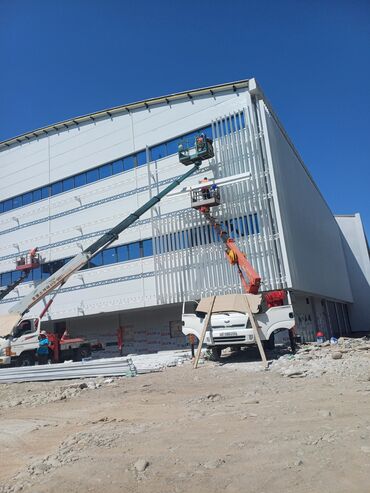- Самоходные и коленчатые автовышки для работ на фасадах, монтажа металлоконструкций, облицовки, остекления, монтажа солнцезащитных ламелей и вентфасадов.