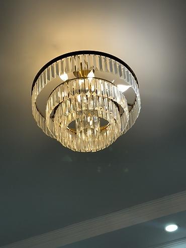 - Осветительная часть: несколько ламп внутри центрального яруса, свет отражается и преломляется в подвесах, создавая яркое, но мягкое рассеянное свечение и красивые блики.