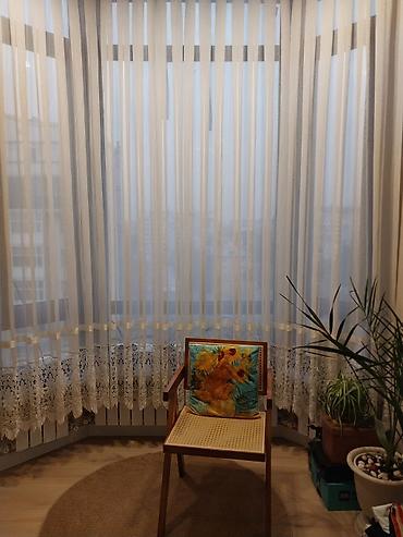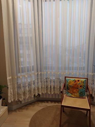 - Размеры: длинные полотна на пол, с широким ажурным подгибом по низу (см. фото для ориентира в эркере).