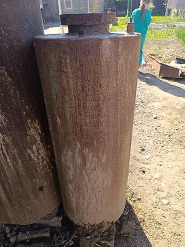 Бойлер для котла на твердом топливе. Вертикальный водонагреватель. Устанавливается на печь, на твердом топливе. Нагрев воды происходит за счёт проходящего в бойлере дымохода.