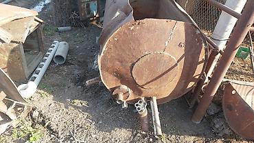 Бойлер для воды .(цилиндрический бак) с патрубками - Материал: сталь, толстостенный. - Форма: горизонтальный цилиндр с днищами. - Габариты по фото: длина ориентировочно 1,8–2,2 м; диаметр около 6...