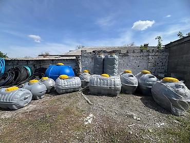 - Объемы: на фото вертикальный бак 1000 л (D 780 × Ш 780 × В 2090 мм, крышка Ø100 мм). В наличии также горизонтальные и сферические модели разных литражей.