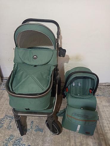 Детская коляска-трансформер 2 в1 и коляска автокресло цвет изумрудный. За все 30000 сомом вот сап на этом номере, есть торг. Коляска б/у не новая и авто коляска не Dona. Пишите если заинтересован...