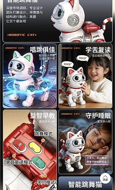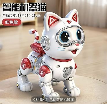- Дизайн: милый робот‑кот с большими глазами, подсвечиваемыми ушками и «реактивным» модулем на спине; элементы в красно‑белой гамме.