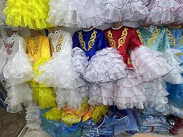 Детские нарядные платья (3модели) 1) Национальный комплект: - Белое платье из легкой полупрозрачной ткани с множеством ярусов воланов по всей длине. - Длинные рукава с ярусами, ворот с оборками. -...