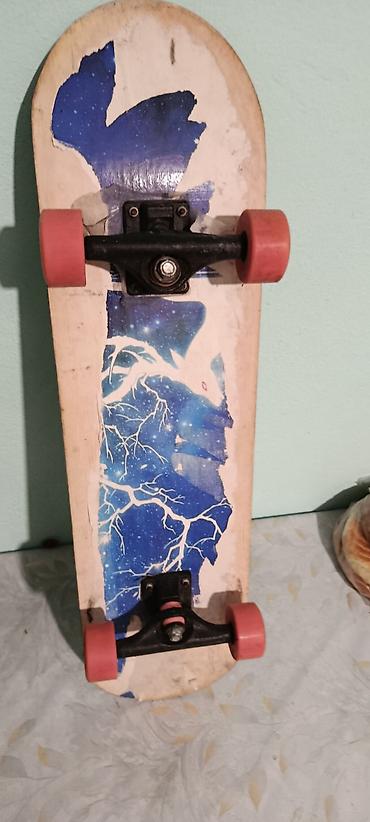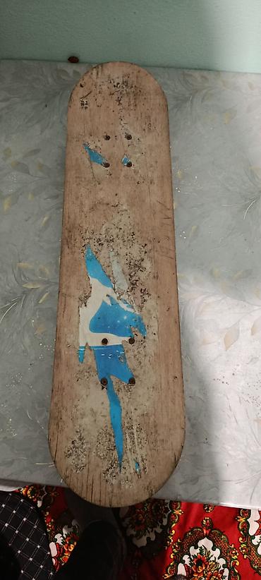 - Дека: деревянная, двусторонний киктейл, ширина средняя (подходит для городского катания и базовых трюков). На нижней стороне — фрагменты графики в синих тонах с «молниями».