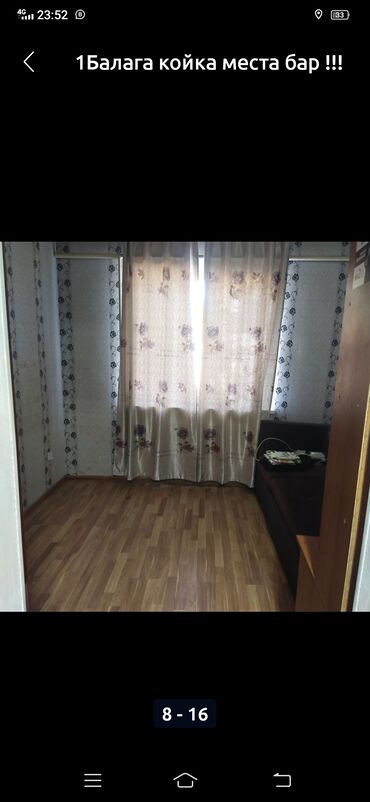 1Балага койка места бар!!! Верхний джалда.8000 сом .Баардык шарттары бар!!! Стиральная машина, Холодильник, Газовый плитка,ванна ,идиш аяк,шкаф,полка.Матрас, одеал, простынь.Адептуу,Ыймандуу Балдар...