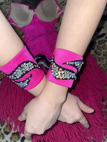 - Юбка из длинной плотной бахромы насыщенного розового цвета — красиво раскрывается в движении, дает объем и динамику на паркете/сцене.