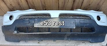 - BMW X5 E53 рестайлинг — бампер с более крупными секциями решётки и посадочными местами под ПТФ, предусмотрена площадка под номер.