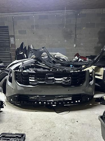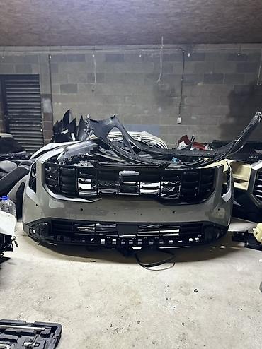 Передний бампер в сборе для KIA KARNIVAL (актуальное поколение, рестайлинг с крупной матричной решёткой).
