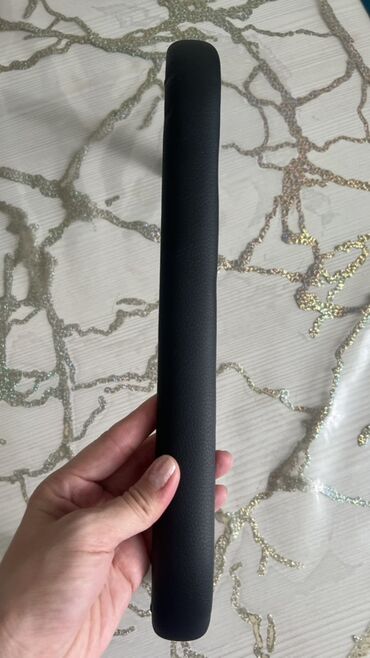 Чёрный бампер для детской коляски. Сделан из прочного пластика, обтянут мягкой кожей. Легко крепится к раме коляски, обеспечивая дополнительную безопасность и комфорт для ребенка во время прогулок. Удобен для захвата, помогает ребенку держаться и чувствовать себя увереннее в коляске.