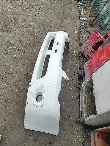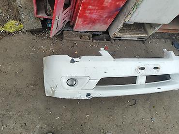 Передний бампер для автомобиля Субару бл 5 (белый), с посадочными местами под противотуманные фары и центральной широкой решёткой воздухозаборника.