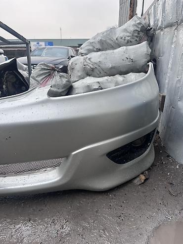 Передний бампер для легкового автомобиля, серебристый металллик.