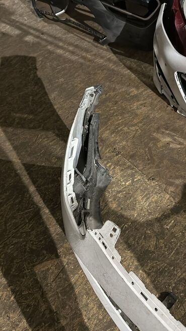 Передний бампер для легкового автомобиля, серебристый цвет. Особенности: - Полный пластиковый бампер в сборе без решётки и накладок (отверстия под ПТФ/заглушки предусмотрены). - Заводская геометри...