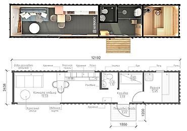 - Габариты модуля: 12 192 × 2 438 мм