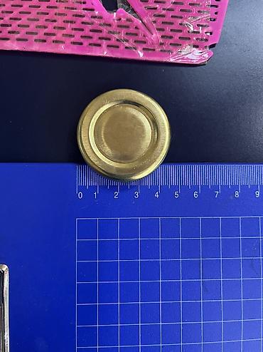 - Диаметр крышки: примерно 38–40 мм (по линейке на фото).