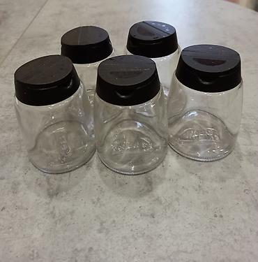 Набор из пяти стеклянных баночек IKEA, предназначенных для хранения специй. Каждая баночка оснащена черной крышкой с удобным двойным механизмом открывания, позволяющим либо насыпать специю через отверстия, либо полностью открыть для большего количества. Высота каждой баночки составляет 8 см. Эти функциональные и компактные баночки идеально подходят для организации пространства на кухне и удобного использования различных приправ. 500сом за все