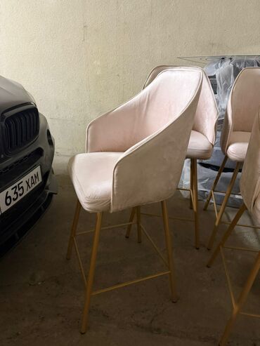 Продаю кресла с мягкими спинками и подлокотниками - Тип: высокие барные/визажные стулья - Обивка: бархат/велюр пастельно‑розового (пудрового) оттенка - Посадка: широкий мягкий сиденье, обтекаемая...