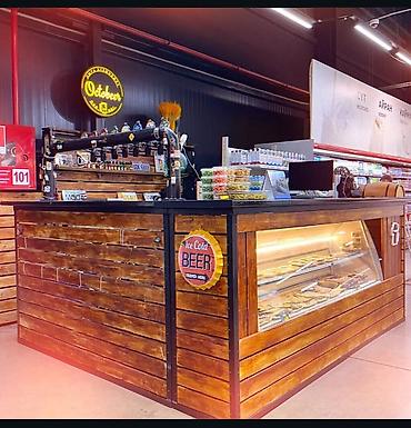 Идеален для установки в торговом зале супермаркета, на фуд‑корте, в проходной зоне ТРЦ или на фестивальной площадке. Возможен брендинг стойки и меню, варьируемая выкладка закусок и напитков.