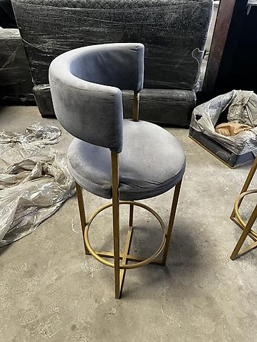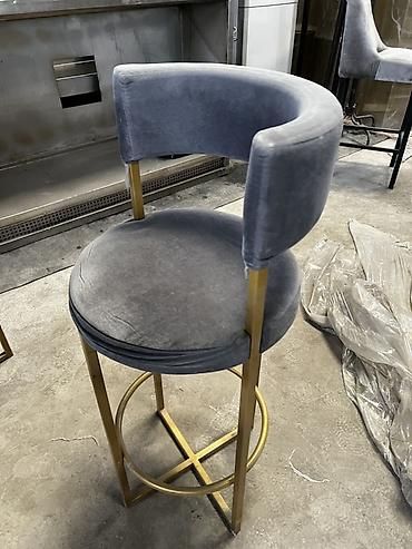Барные стулья с мягкой спинкой - Тип: высокие барные стулья - Дизайн: полукруглая спинка с вертикальной стёжкой-кантованием, эргономичное сиденье, опора для ног по периметру - Обивка: бархатистая...