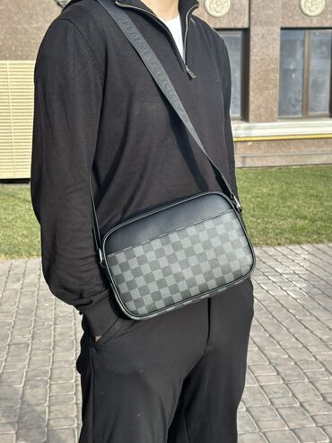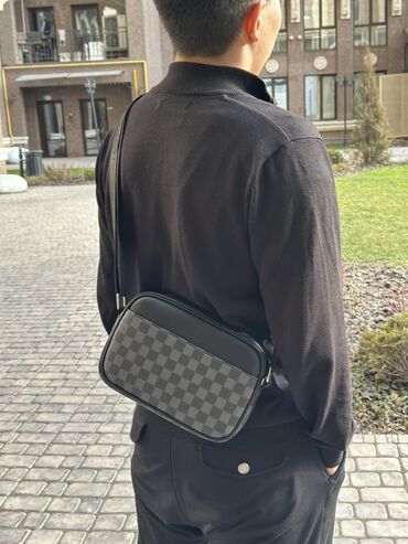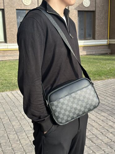 Компактная мужская сумка через плечо, цвет черный. - Материал: плотная фактурная кожа (зернистая), подкладка текстиль. - Формат: вертикальный, строгий минималистичный дизайн. - Отделения: 2 основн...