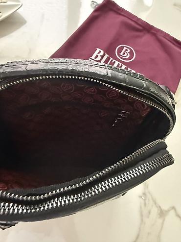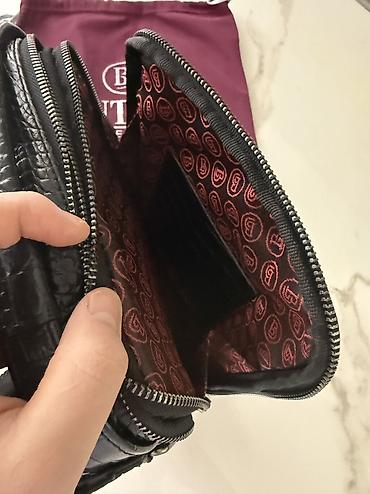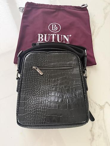 Мужская сумка-барсетка Butun из чёрной экокожи с тиснением под крокодила. Особенности: - Компактный форм‑фактор с ремешком‑петлёй для запястья. - Основное отделение на металлической молнии по верх...