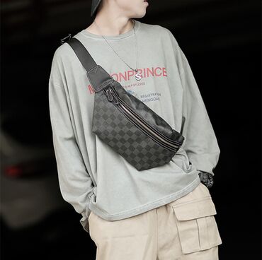 Mulinsen Простая корейская модная поясная сумка из искусственной кожи, стандартная мужская, с узором, черная