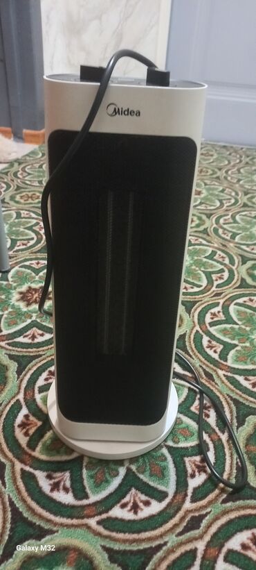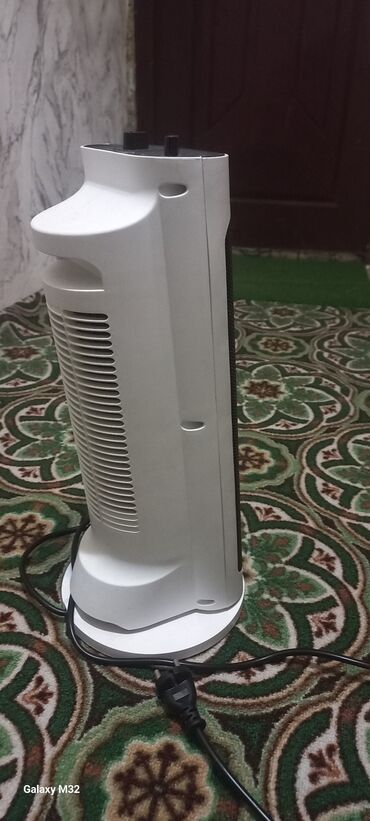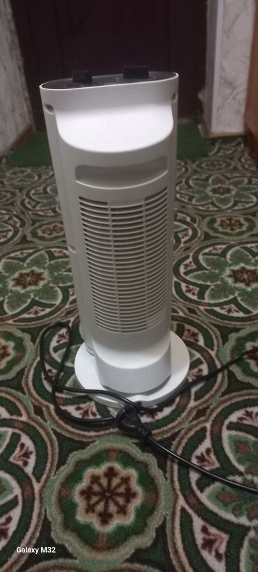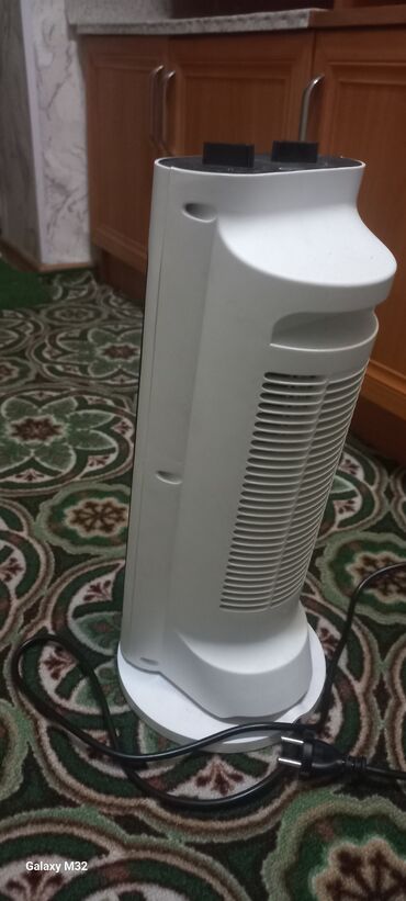- Компактный вертикальный обогреватель с вращающимся корпусом (торнадо/башня), белый.