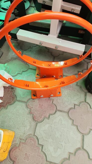 ОранжевыйБаскетбольное кольцо оранжевого цвета, предназначенное для крепления к баскетбольному щиту. Конструкция включает два кольца, соединенные механизмом, который позволяет одному кольцу складываться или двигаться относительно другого. Это может быть полезно для тренировок или для экономии места при хранении. Кольцо выполнено из металла и имеет оранжевое покрытие. По периметру кольца расположены крепления для сетки.