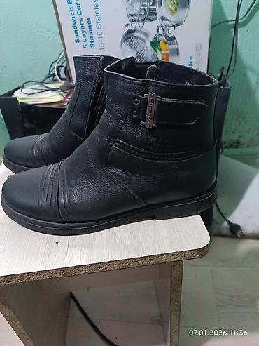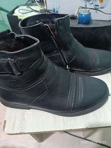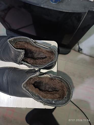 Батинки кожаные двойной слой с наружи. и внутри натуральны мех. классика стиль. покупал в Гуанджоу за 6500 сом. одевал один раз. находится восток 5. размер 40 41