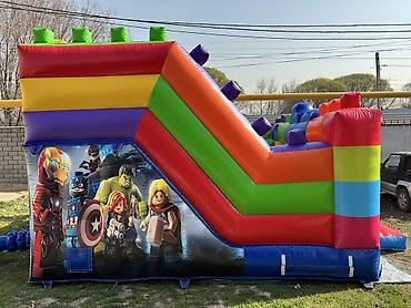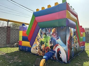 Надувной игровой комплекс/батут для детей. - Яркий многоуровневый комплекс с тематическими рисунками мультгероев. - Широкая входная арка с тоннелем, мягкими бортиками и противоскользящей надувной ...
