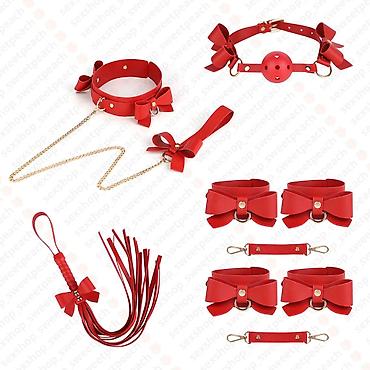 БДСМ‑набор из красной экокожи с бантиками Комплектация: - Ошейник с