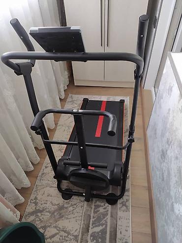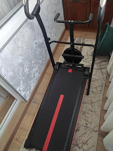 - Компактная беговая дорожка с ручным приводом: полотно движется за счёт шага, не требует подключения к сети.