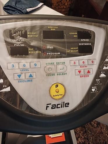 Подходит для ходьбы и бега с плавной регулировкой нагрузки, контролем пульса и расширенной статистикой тренировки. Отличный вариант для домашних кардио‑тренировок с возможностью быстрого изменения скорости и угла наклона прямо с поручней. Маркировка на деке и панели: Facile.