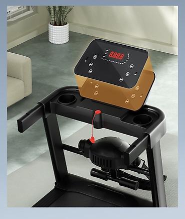 - Простая панель управления: крупный светодиодный дисплей с индикаторами времени, дистанции, скорости и, судя по пиктограммам, калорий. Сенсорные кнопки быстрого старта/стопа.