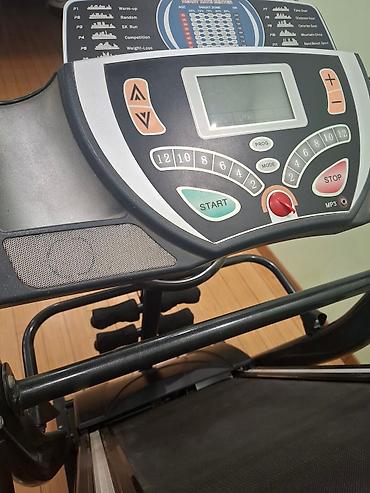 - Панель управления с ЖК‑дисплеем: кнопки Start/Stop, регулировка скорости (+/−), выбор режимов и программ (пронумерованные пресеты). Есть индикаторы целевых зон пульса/тренировок.