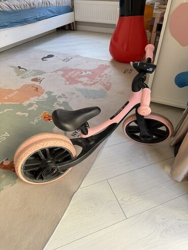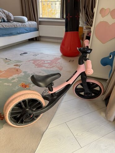 - Формат: 3‑колесный беговел с двойным задним колесом для устойчивости и одиночным передним.
